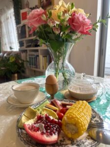 تۈنۈگۈن يىگىلى بولىدىغان ئەتىرگۈل، ياسىمەن چېيى سىتىۋالغاچ، گۈللەردىن ھوزۇرلىنىپلا قالماستىن، يەنە گۈل يەيدىغان رەيھان قىزنىڭ يىمەك-ئىچمەك ئادىتىدىنمۇ سۆيۈنۈپ قالدىم.